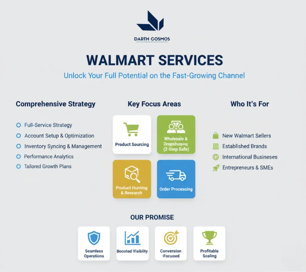 Achieving success on Walmart’s marketplace takes more than just listings it takes a complete strategy. We offer full-service solutions including product sourcing, listing optimization, inventory syncing, order fulfillment, and performance tracking to ensure seamless operations and maximize your conversion potential in this fast-growing retail channel.