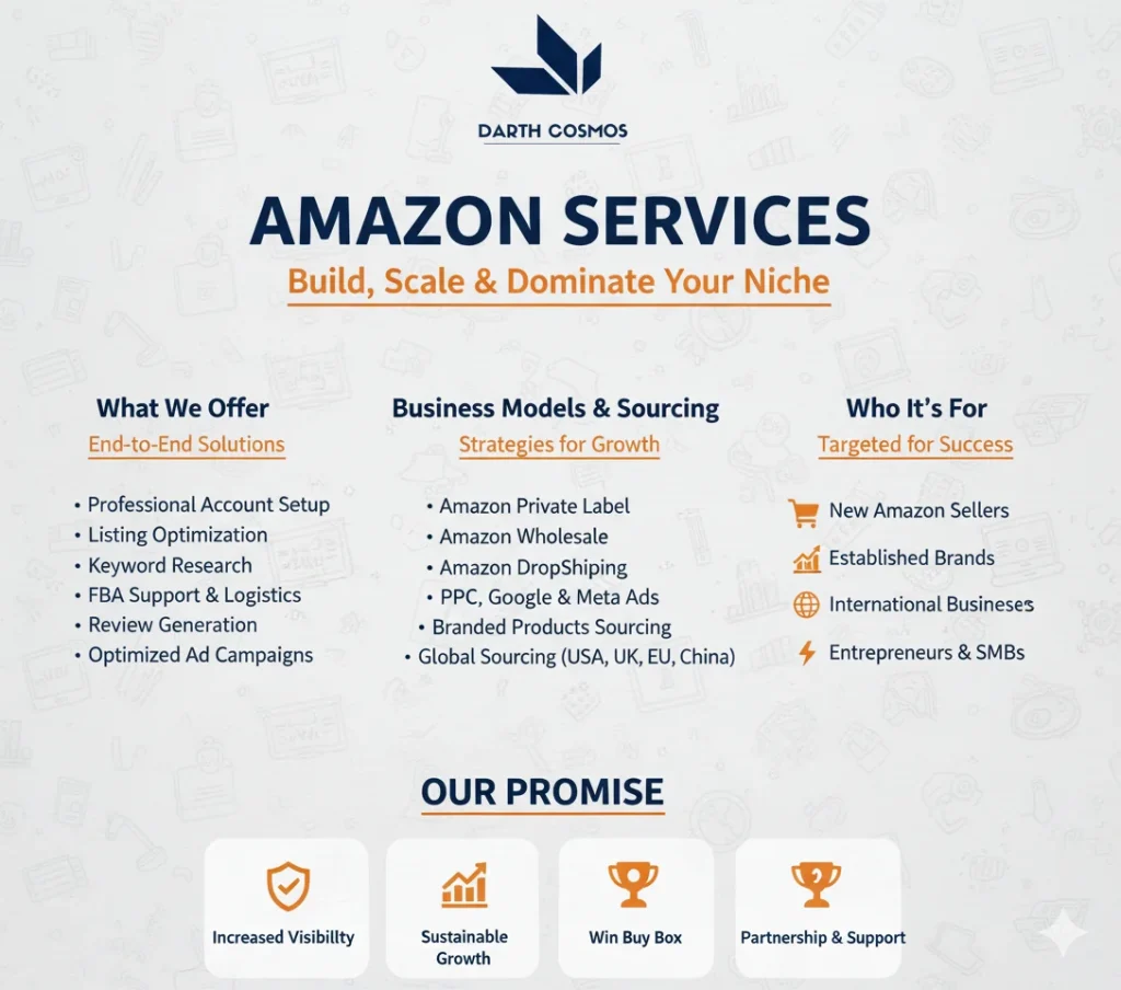 We offer end-to-end Amazon services designed to help you build, scale, and dominate your niche. From setting up a professional seller account to running optimized ad campaigns, we simplify every step so you can focus on growing your brand.